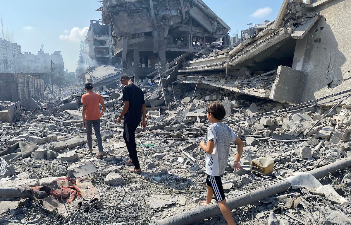 «Vivimos«, dijo uno de los corresponsales árabes de Al Jazeera, hablando por encima del zumbido omnipresente de los mortales drones de Israel, «envueltos en el olor a humo y muerte«. Familias enteras, veinte, treinta personas a la vez, han sido borradas del mapa. Amigos y familiares que se preocupan desesperadamente los unos por los otros a menudo encuentran ruinas humeantes donde antes vivían seres queridos, cuyo destino es desconocido, desaparecidos bajo el hormigón o dispersos en los restos de áreas cada vez más irreconocibles. Los supervivientes se encuentran en una de las áreas más densamente pobladas de la Tierra, con telecomunicaciones en ruinas, electricidad intermitente, sistemas médicos fallidos, una inminente interrupción de internet y un futuro incierto4.